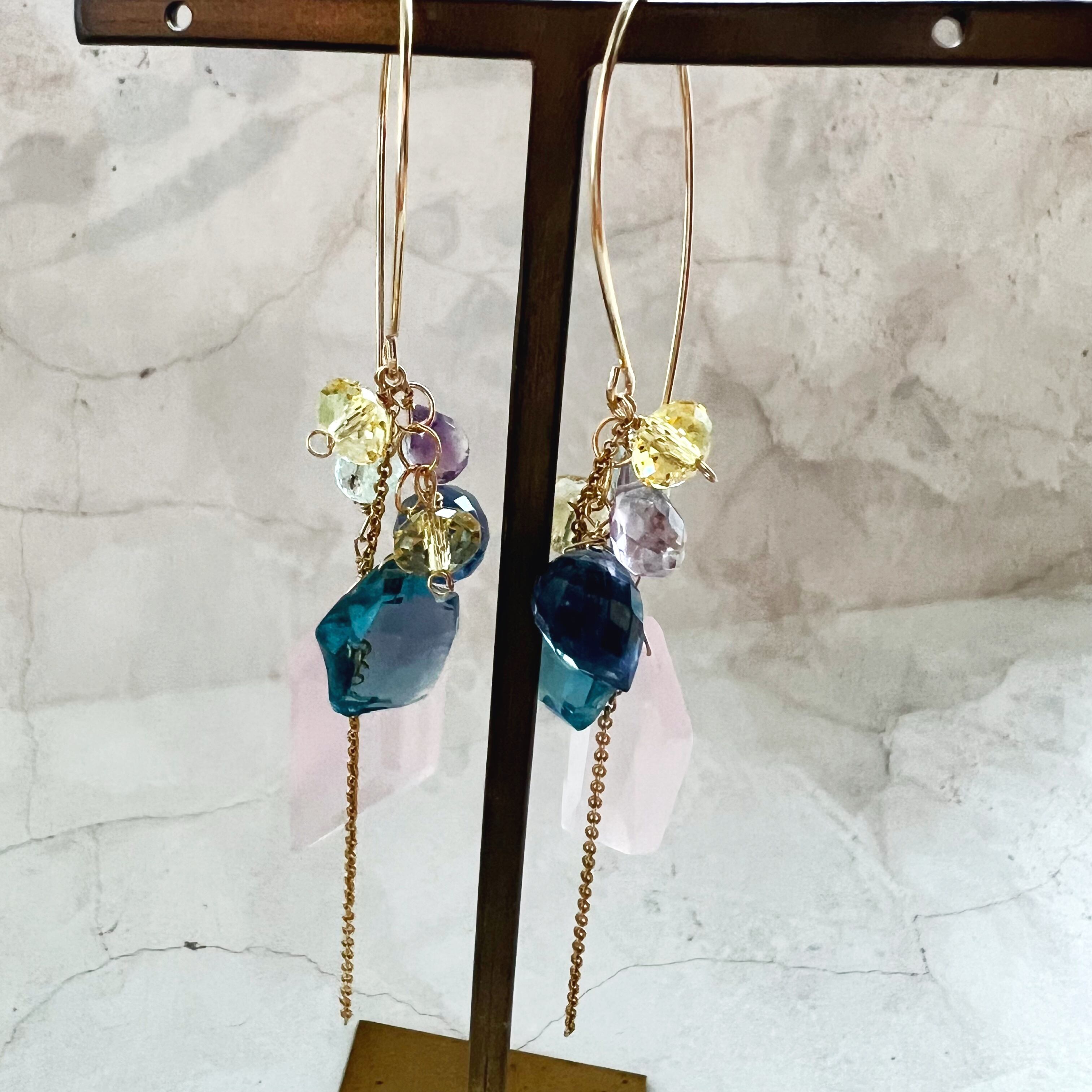 ○ ローズクォーツ、ブルーカラークォーツ、アクアマリン、イエローカラークォーツ、アメジスト