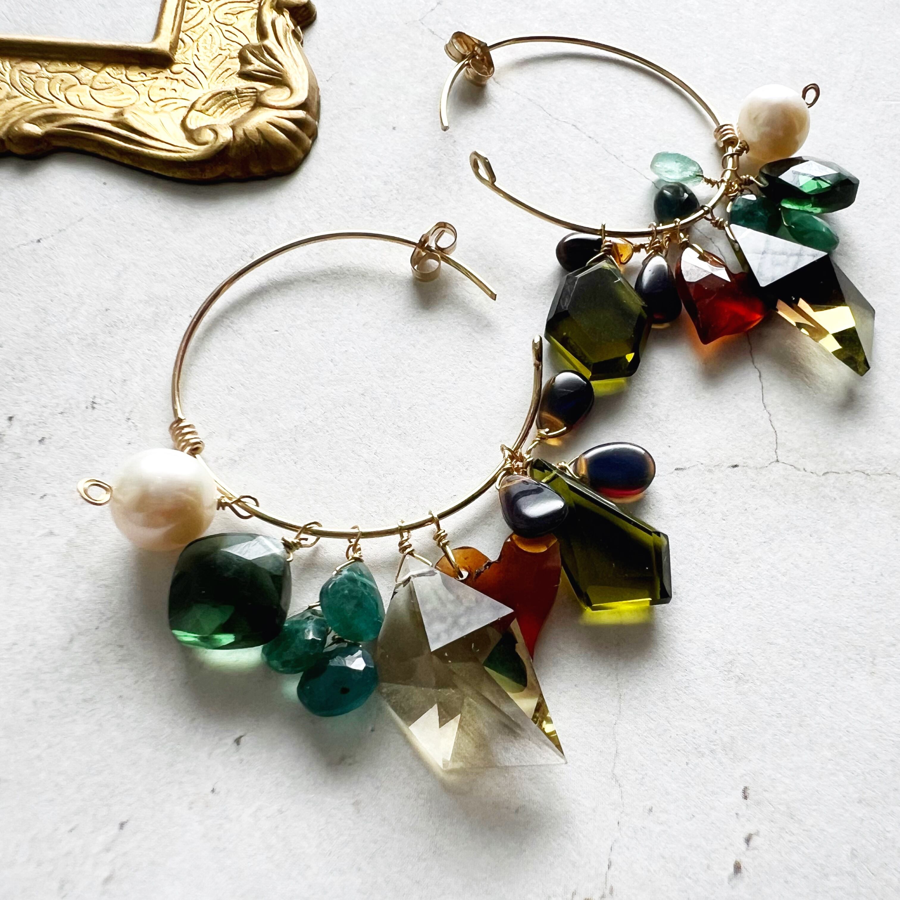 冬の装いにぴったりなアクセントアイテム、スピンドルカットバイカラーレモンクォーツのフープピアスが登場しました!鮮やかなバイカラーのレモンクォーツが優雅に揺れ動き、見る人を魅了します。シンプルなコーディネートから、オケージョンに合わせたスタイルまで、幅広くお使いいただけるデザインです。このピアスは、冬のファッションに華を添えること間違いなしです。